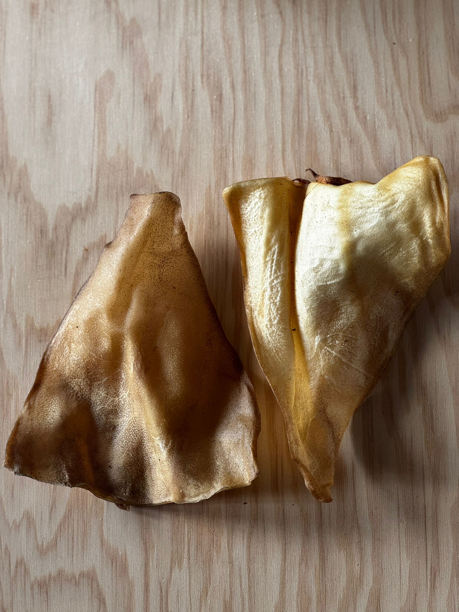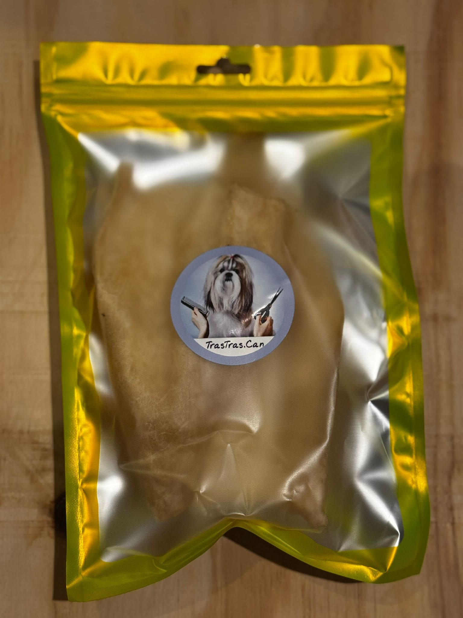 Este snack está elaborado a partir de orejas de vaca cuidadosamente seleccionadas y deshidratadas, conservando sus nutrientes y su aroma natural. Es rico en proteínas y colágeno, lo que lo convierte en un premio saludable que contribuye a la salud de las articulaciones, el pelaje y la piel de tu mascota.