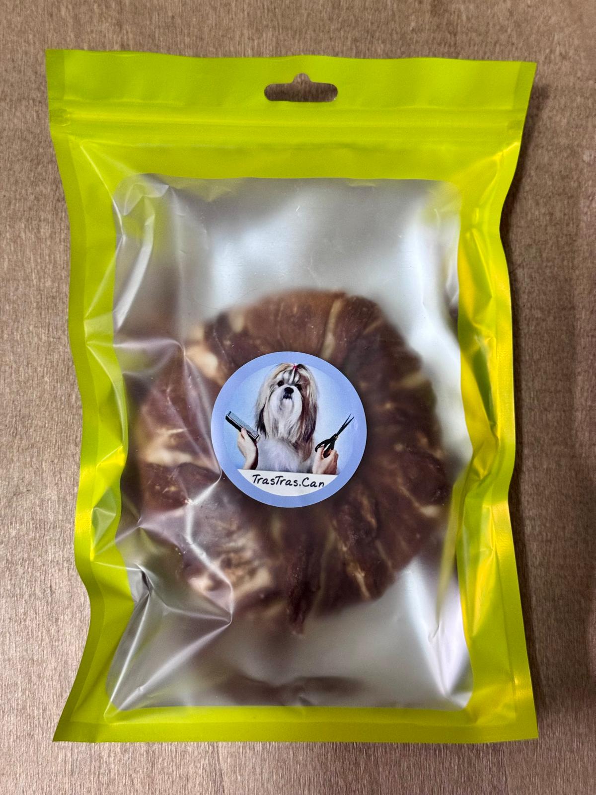El Donut de Pato es un snack natural, muy denso e hipoalergénico, diseñado tanto para cansar a tu perro como para ofrecer una alternativa nutritiva segura para estómagos sensibles. Al estar elaborado con un tejido vacuno firme forrado íntegramente de carne de pato, aporta un aroma persistente y profundo que encantará a tu mascota.